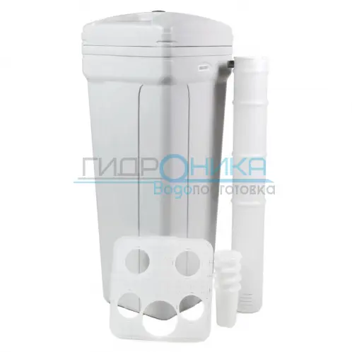 В солевой бак засыпается таблетированная соль, из которой формируется солевой раствор. За формирование раствора в нужной концентрации и его подачу в корпус фильтра отвечает управляющий клапан.