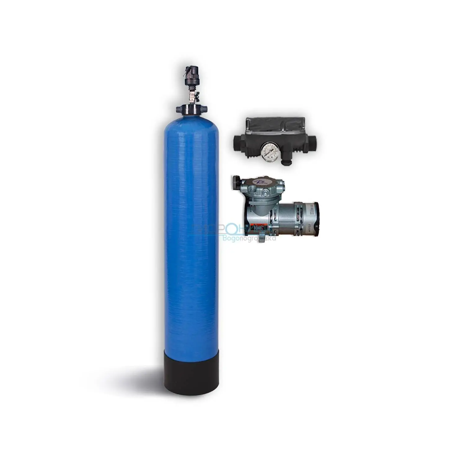 При открытии крана, реле управления компрессором определяет начало движения воды в трубе и подает импульс на включение компрессора. Компрессор накачивает воздух в корпус аэрационной колонны, при этом происходит окисление растворенного железа в аэрационной колонне.
